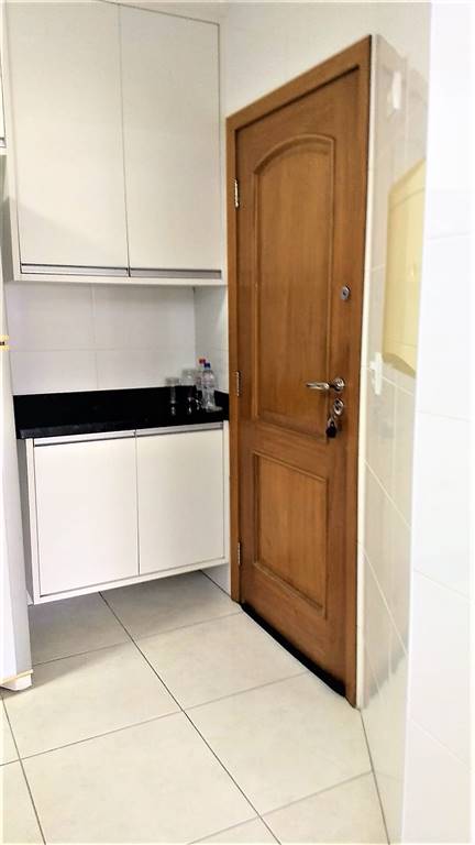 O apartamento tem duas portas de entrada, social e serviço.
